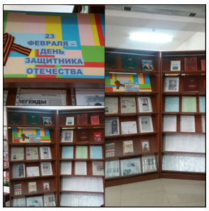 15 февраля вРайонной библиотеке Итум-Калинского муниципального района в ознаменовании этого поистине всенародного праздника для читателей экспонирована тематическая книжная выставка под названием «23 февраля – День защитника Отечества», которая включает в себя разделы: «О героях былых времен», «Герои нашего времени», «Героями не рождаются». Представленные книги содержат информацию о героическом прошлом нашей страны, о великих полководцах и военачальниках А. Невском, А. Суворове, М.Кутузове, Г. Жукове и др. На выставке представлена информация из газет и сети Интернет о современных героях. Разделы выставки «Герои нашего времени» - о героях Чеченской и Афганской войн, «Героями не рождаются» - о людях, совершивших героические поступки в мирное время.
